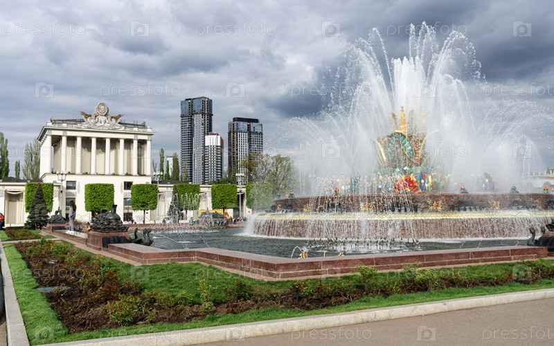 Вид на действующий фонтан «Каменный цветок» на выставке ВДНХ в Москве
