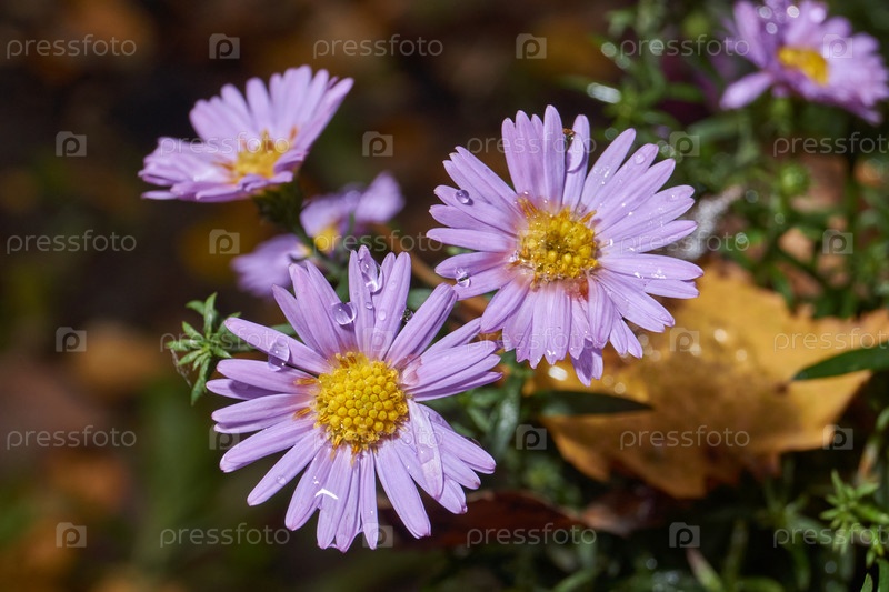 Астра многолетняя утром после первых заморозков в саду. род травянистых растений семейства Астровые (Asteraceae). 3 ноября 2024 г