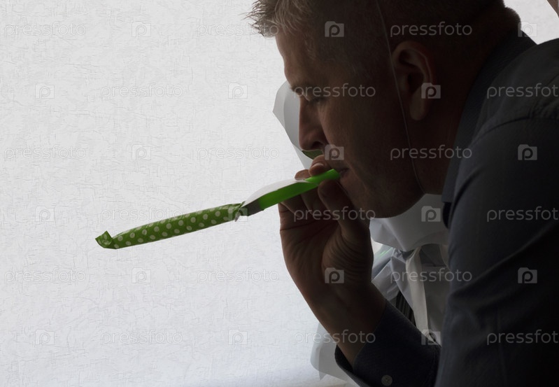 Мужчина средних лет празднует в одиночестве. Люди