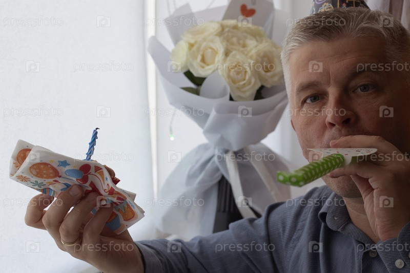 Мужчина средних лет празднует в одиночестве. Люди