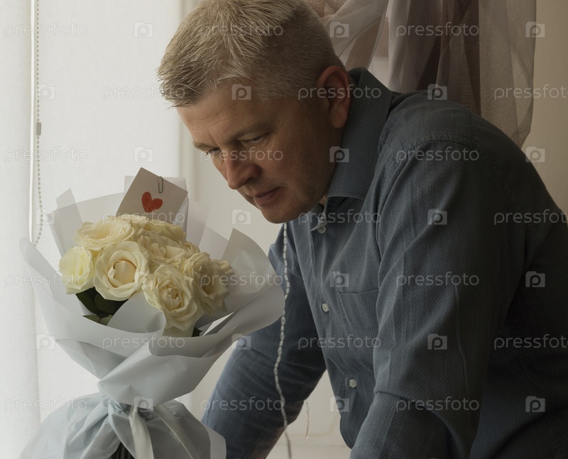 Мужчина средних лет празднует в одиночестве. Люди