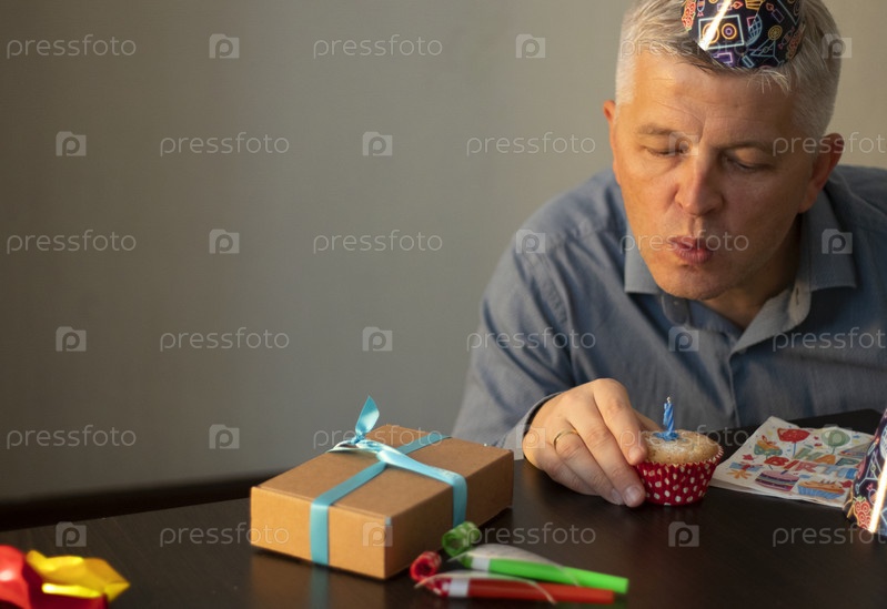 Мужчина средних лет празднует в одиночестве. Люди