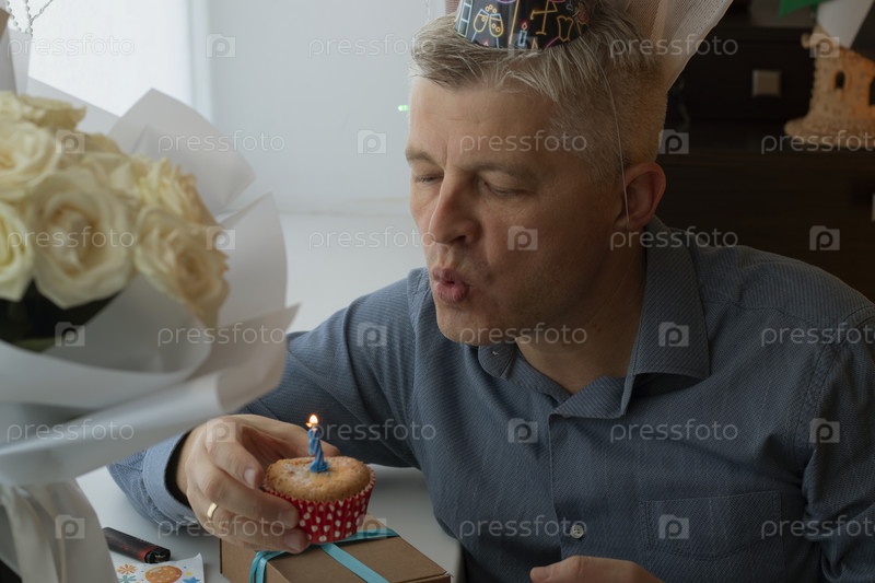 Мужчина средних лет празднует в одиночестве. Люди