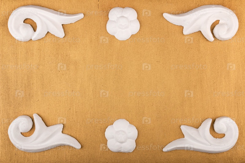 Белая лепнина на пустом золотом фоне. С пространством для дизайна, текстовое место