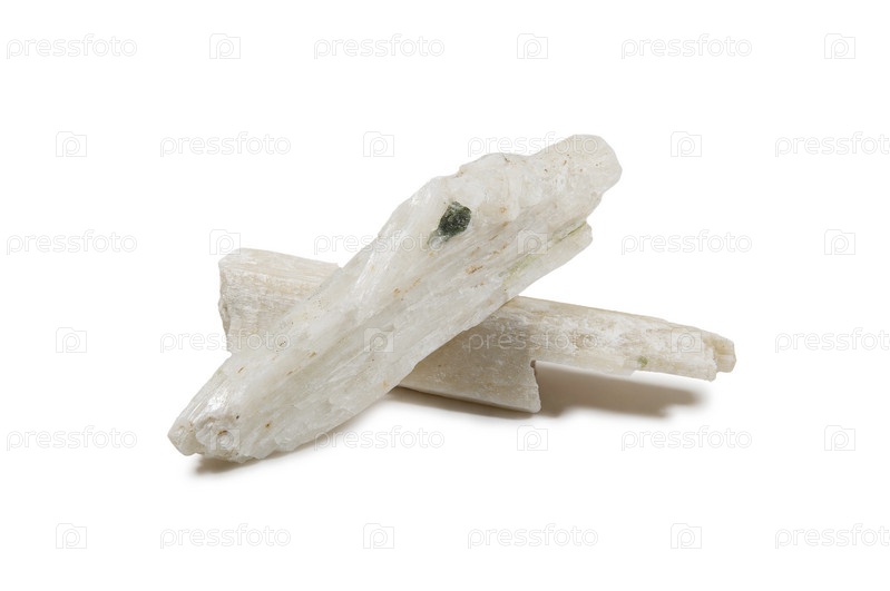 Два необработанных фрагмента минерала волластонита с волокнистой структурой