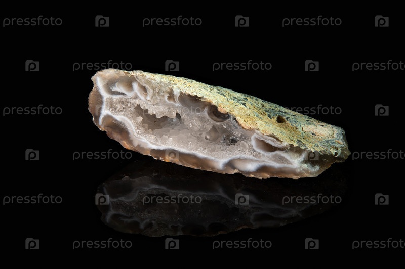 Осколок минерала жеоды хальцедона, полупрозрачно-коричневого цвета с белыми прожилками