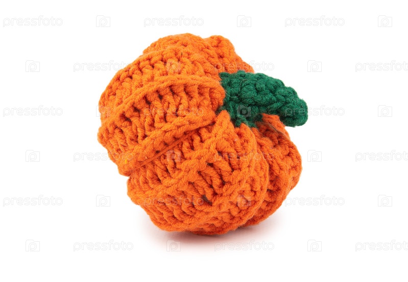 Вязаная тыква с зеленым хвостиком, связанная из толстой пряжи