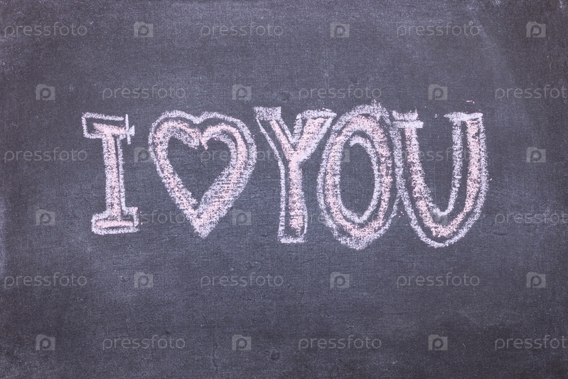 Я люблю тебя. Надпись мелом на доске. Разноцветная надпись