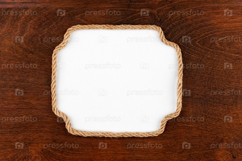 Рамка из веревки, лежащей на темном дереве с белым фоном для вашего текста