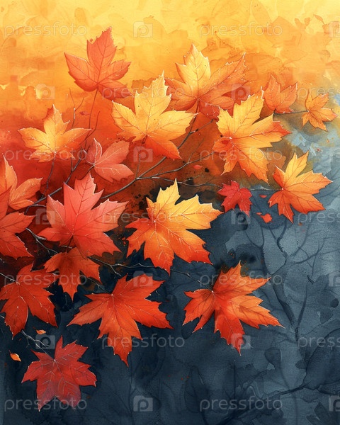 Обои винтаж красочные оранжевый, желтый и красный осень осенние листья клен