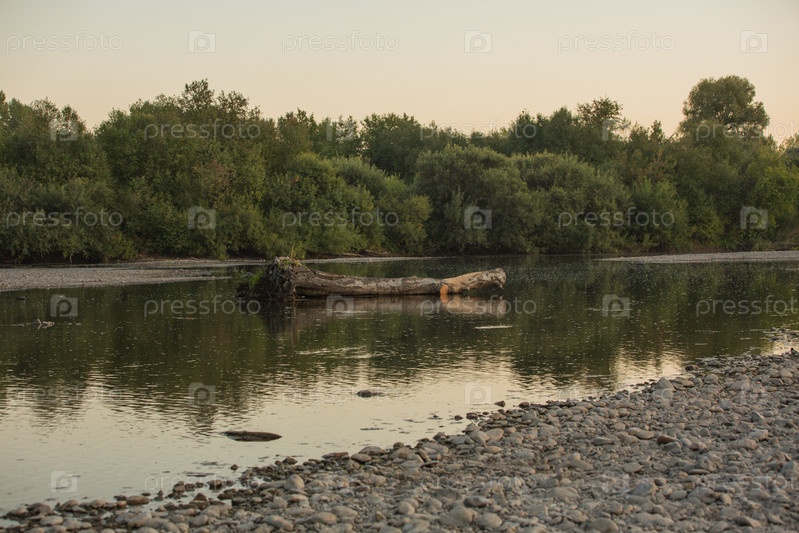Летний закат на реке, закат у воды