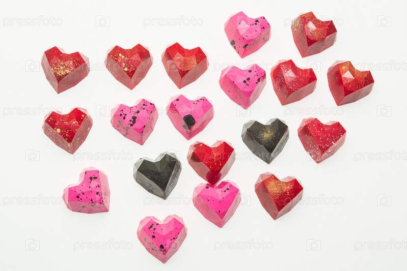 Вкусные шоколадные конфеты, крупный план, разные цвета