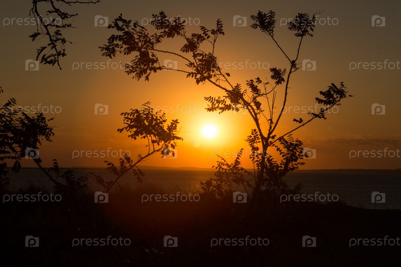 Красивый закат над морем теплым летним вечером