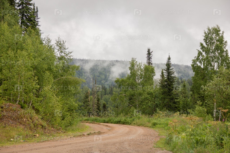 Лесная тропа туманным весенним утром после ночного дождя