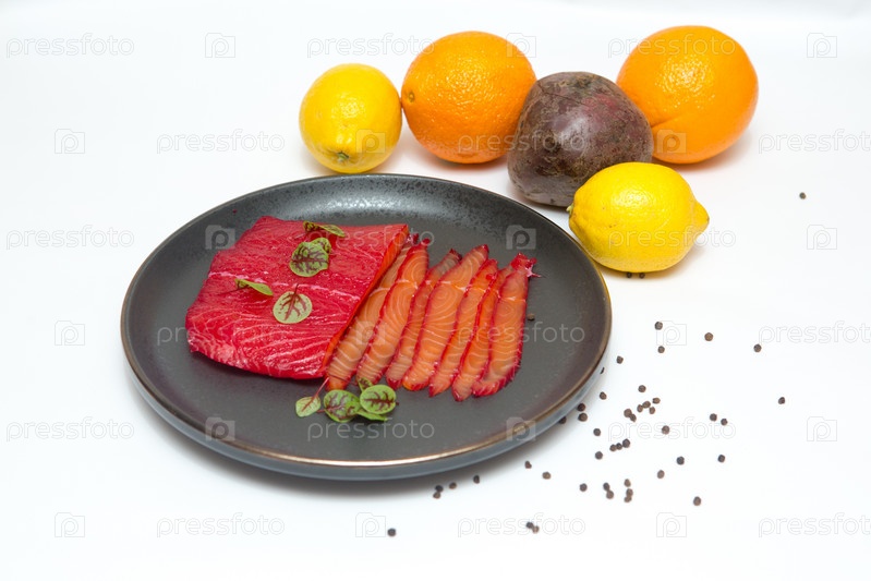 Соленая красная рыба с морской солью