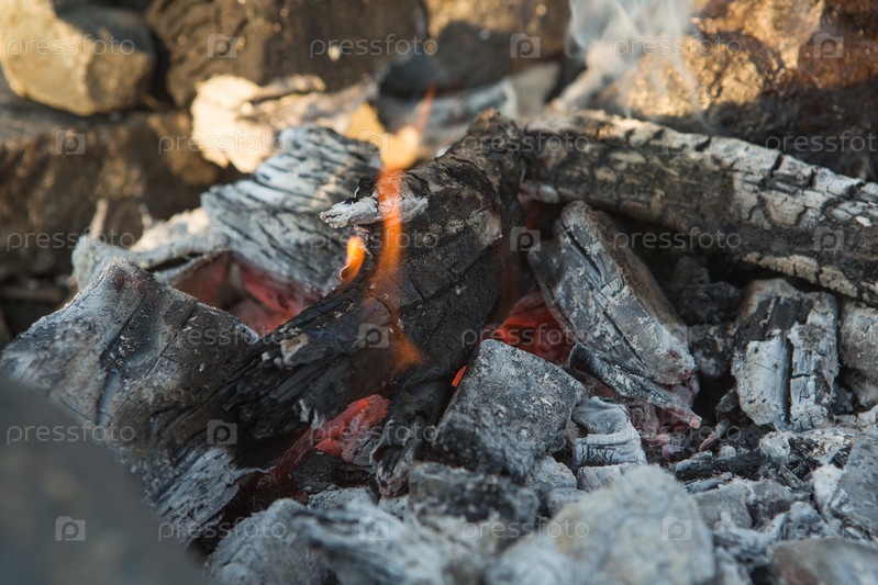 Угли. Пепел в мангале.Горячие угли