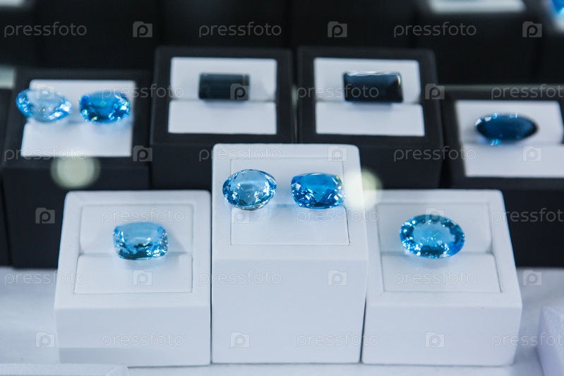 Искусственные ювелирные камни в витрине ювелирного магазина