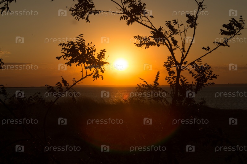 Красивый закат над морем теплым летним вечером