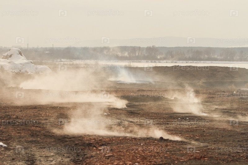 Дым на шлаковой свалке, загрязнение