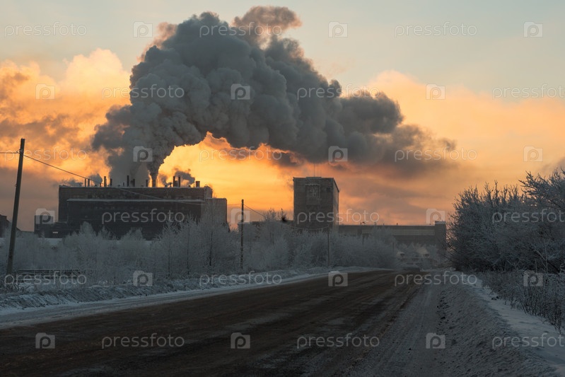 Завод с дымом и загрязнением воздуха
