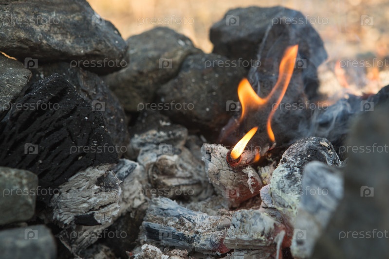 Угли. Пепел в мангале.Горячие угли