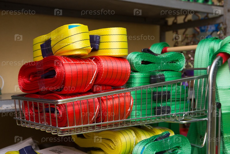 Промышленная швейная машина шьет ленточную стропу. Производство текстильных строп и ремней-завязок