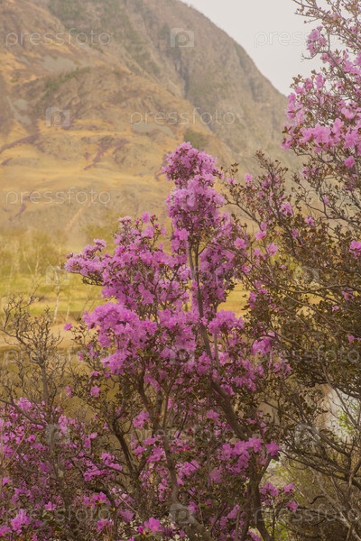 Рододендрон Ледебура розовый цветет в мае в горах Алтая