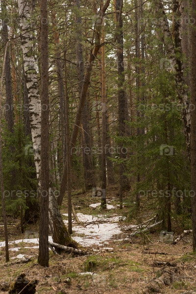 Дорога через хвойный лес весной, Сибирь