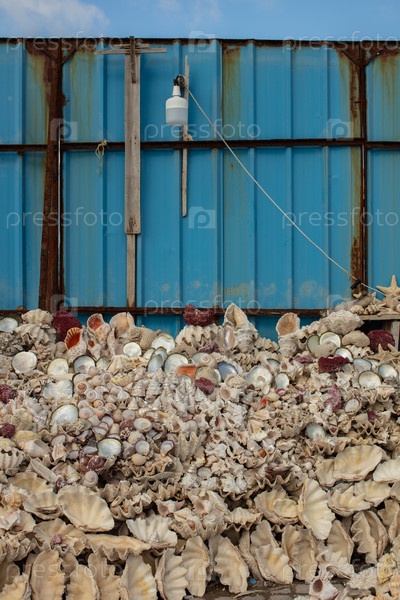 Летний фоновый узор из ракушек. Ракушка крупным планом. Побережье океана