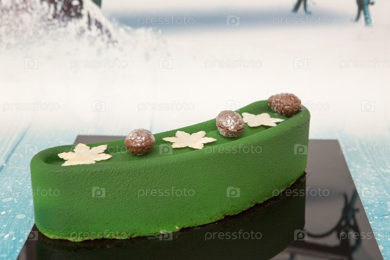 Современный французский муссовый торт. Картинка для меню или каталога кондитерских изделий
