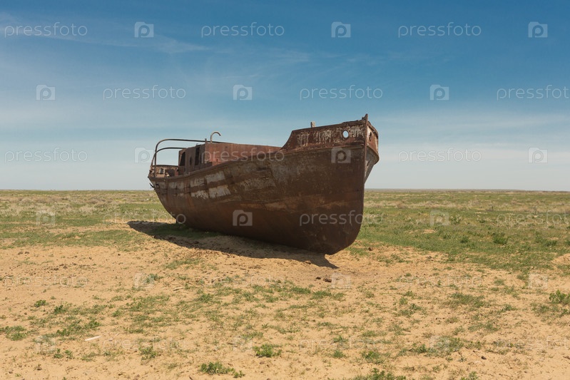 Старый корабль на суше. на дне высохшего Аральского моря