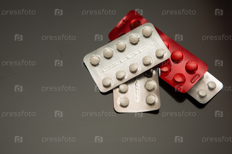 Различные лекарства. Таблетки, пилюли в блистерной упаковке. Лекарства, лекарства, плоская планировка, накладные расходы