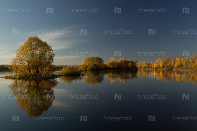 Мягкий осенний пейзаж, отражающийся в спокойной воде
