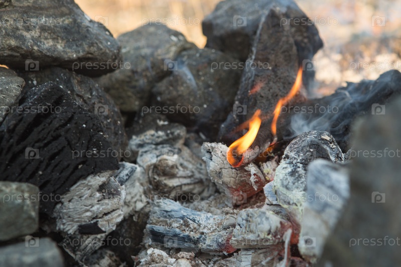 Угли. Пепел в мангале.Горячие угли