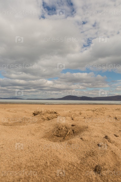 Песчаный пляж на берегу реки Енисей. Россия, Республика Хакасия