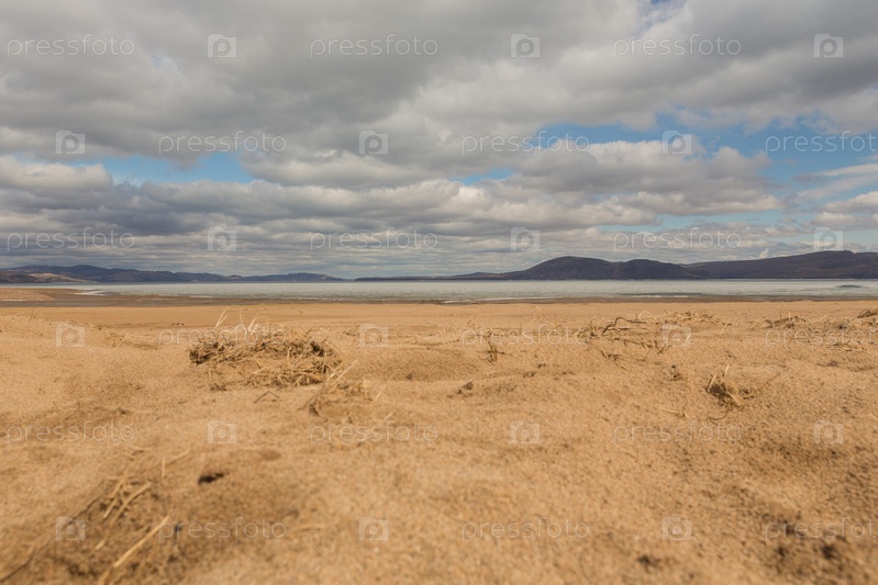 Песчаный пляж на берегу реки Енисей. Россия, Республика Хакасия