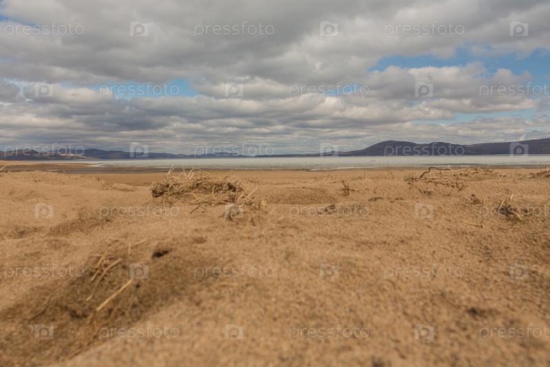 Песчаный пляж на берегу реки Енисей. Россия, Республика Хакасия