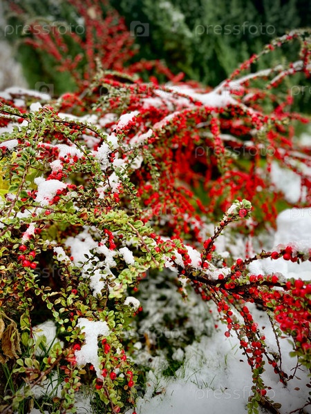 Красные ягоды в снегу