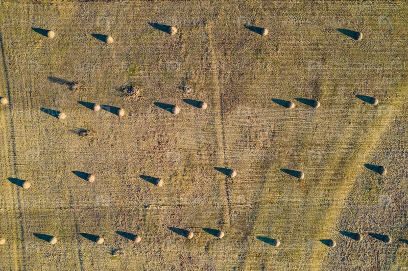 Осенний пейзаж с высоты птичьего полета. Вид на поля и сельскохозяйственные угодья с высоты птичьего полета. поле со стогами сена. Живописная деревня и холмы на заднем плане. сельскохозяйственные поля