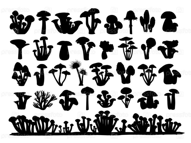 Набор силуэтов грибов