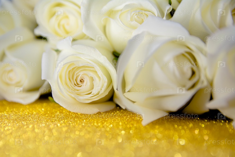 Бутоны белых роз на золотом фоне