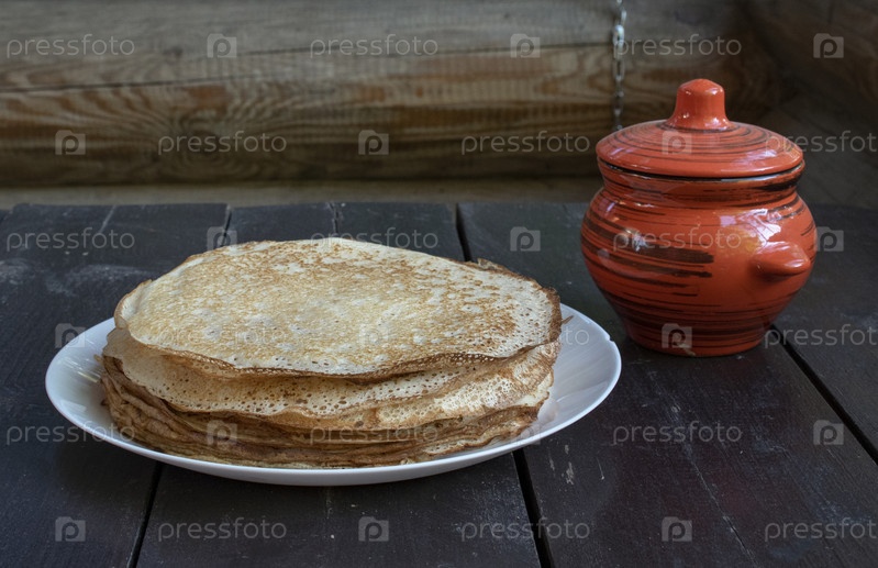 Блины на деревянном столе