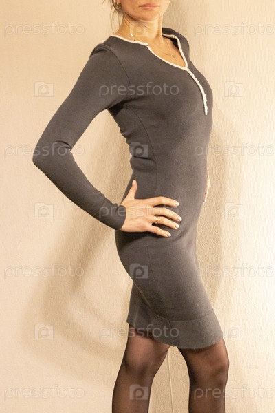Худая женщина в стильном платье теплых тонов. Мода