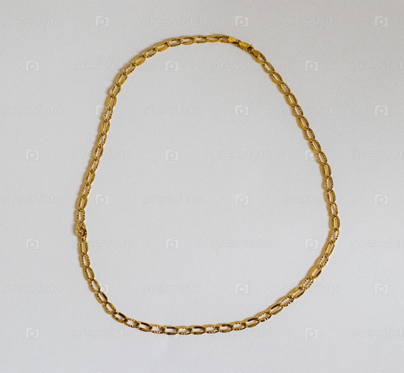 Крупный план золотой цепи на белом фоне. Ювелирные изделия