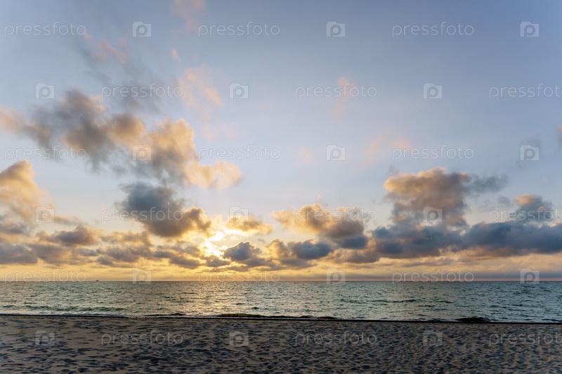 Морской пейзаж на закате. Яркий закат на берегу моря. Закат на Балтийском море