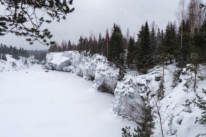 Зима в парке. Карелия Рускеальский заповедник зимой. В лесу идет снег
