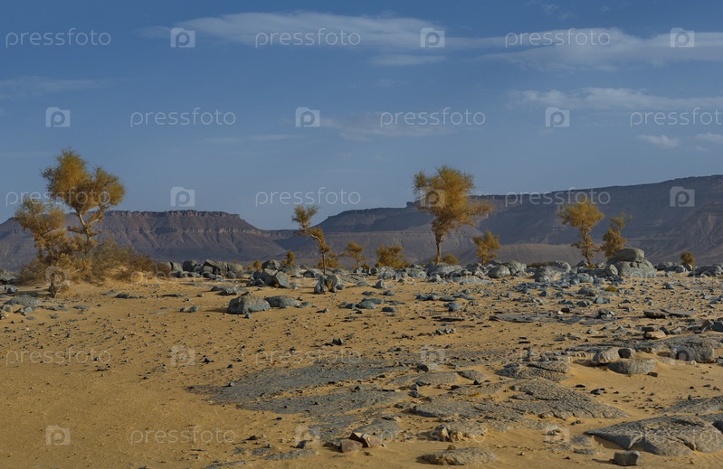 Западная Африка. Мавритания. Каменные места в горячих песках юго-западной окраины пустыни Сахара