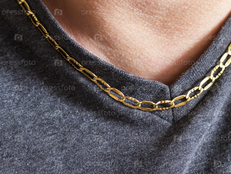 Мужчина носит золотую цепь. Ювелирные изделия