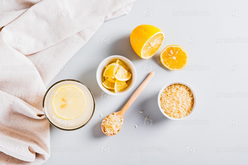 Напиток для похудения рисово-земпик в стакане на столешнице вид