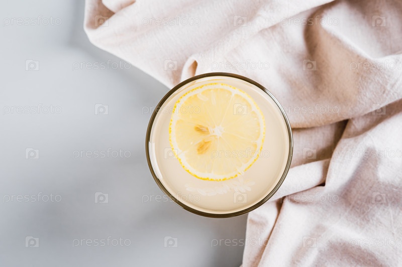 Крупный план напитка для похудения рис-земпик в стакане на столешнице